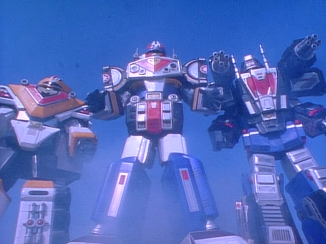 Well, here we have the final showdown between the Space Rangers and the last 3 Psychos and thank god it didn't disappoint. After Dark Specter once again questions Astronema about the traitor almost depleting his entire power, the rangers track their Mega Vehicles to a distant planet but before they can go get them, Zhane is smart to stop them as the Psychos are clearly leading them to a trap. So the rangers come up with a plan that involves Zhane to keep the Psychos busy by summoning the Mega Winger and Delta Megazord while the rangers head underground in the Mega Tank (So glad that thing is still being used! :) to go after their zords. Meanwhile, the Psychos are two steps ahead when the rangers arrive as Psycho Yellow watches as the rangers enter their Mega Vehicles and form the Mega Voyager again. As the three megazords head into battle, the control suddenly stop. As the rangers try to regain control of the Mega Voyager, Psycho Yellow begins speaking through the megazord as she has infected it with a virus. With the Mega Voyager now in control of the Psychos, Psycho Yellow begins attacking both the Delta Megazord and Mega Winger.